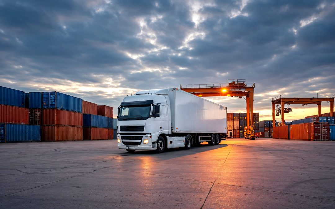 semi-camion-en-el-puerto-durante-la-puesta-del-sol